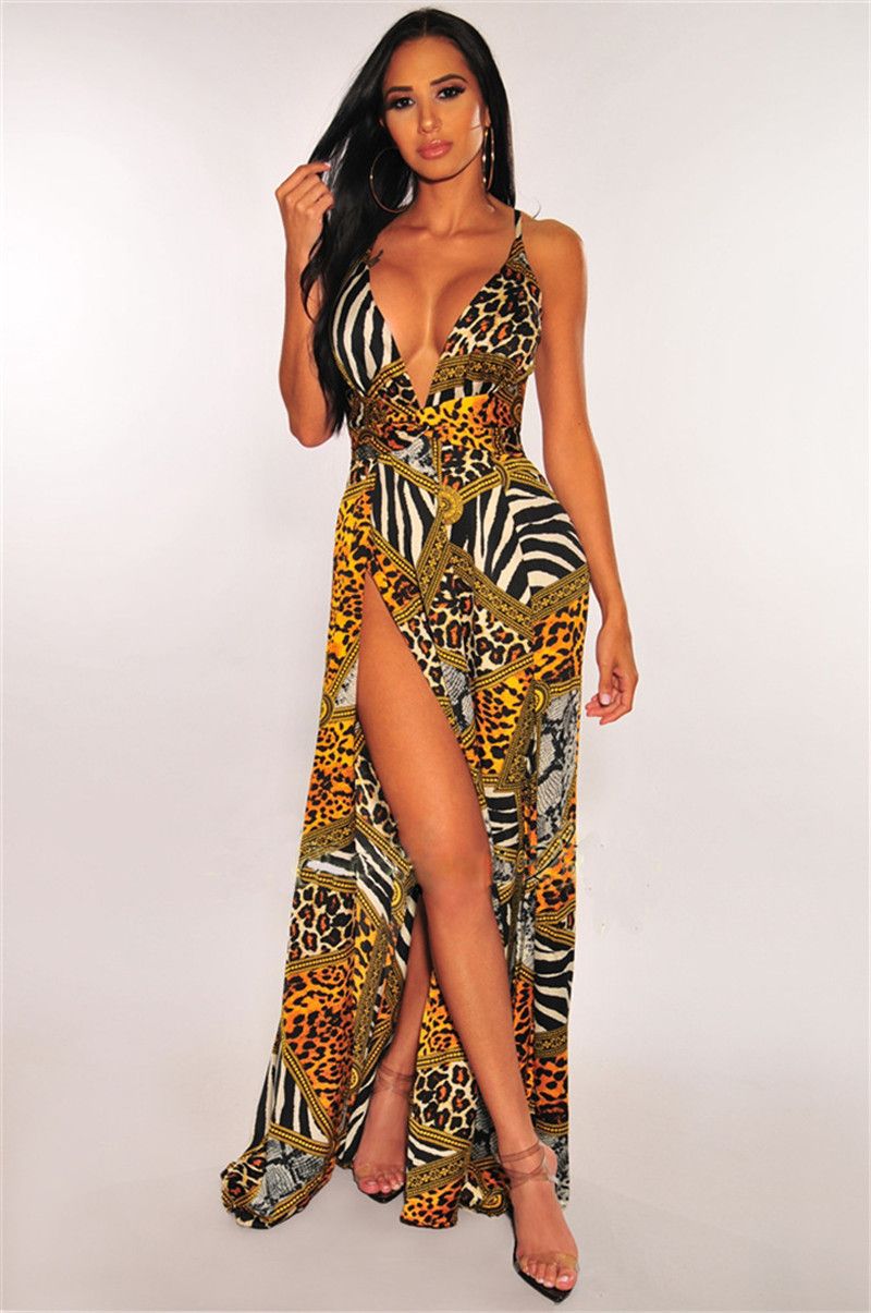 Sexy High Split Womens Dress Designer Leopard Print Summer Long