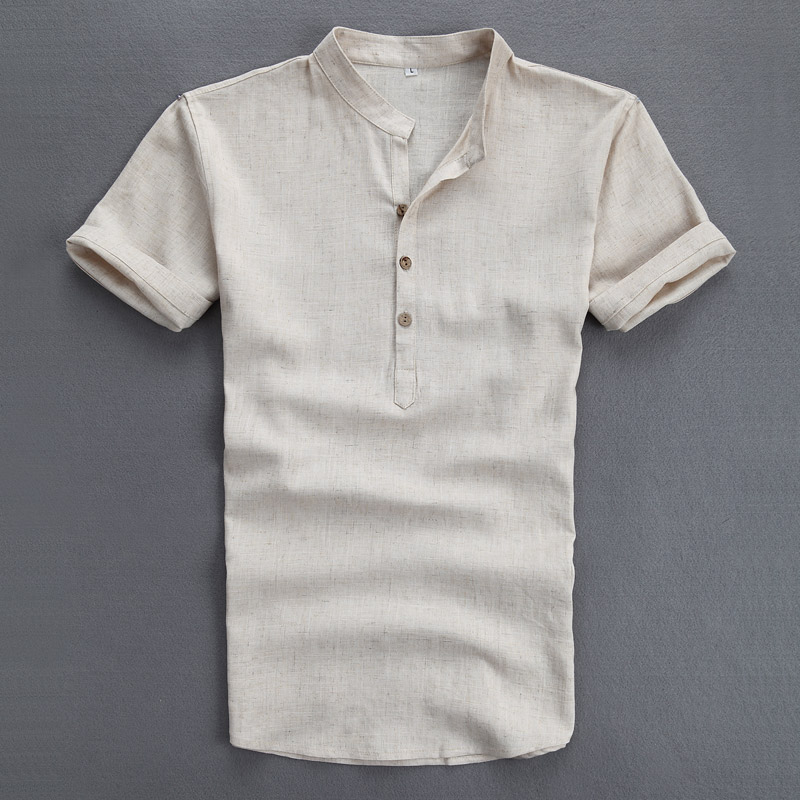 Men Linen Cotton Shirts Summer Causal Short Sleeve Chinese