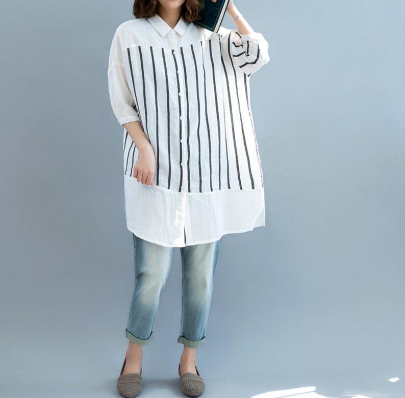 Womens Summer Linen Shirt Loose Fitting Long Shirt Gown Etsy