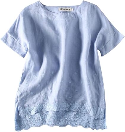 Minibee Women S Summer Linen Tunic Shirt High Low Hem Embroidery