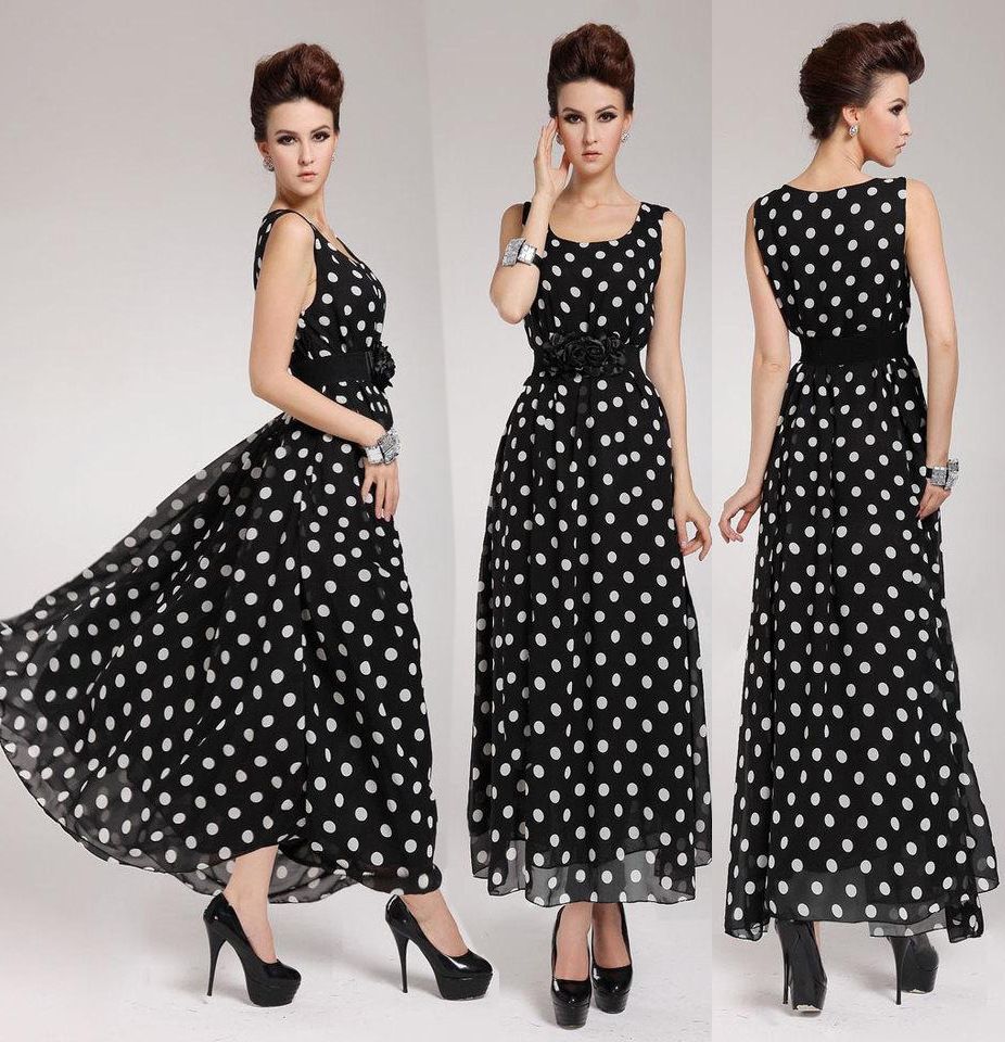 2020 Black White Polka Dot Long Maxi Dresses For Ladies Womens
