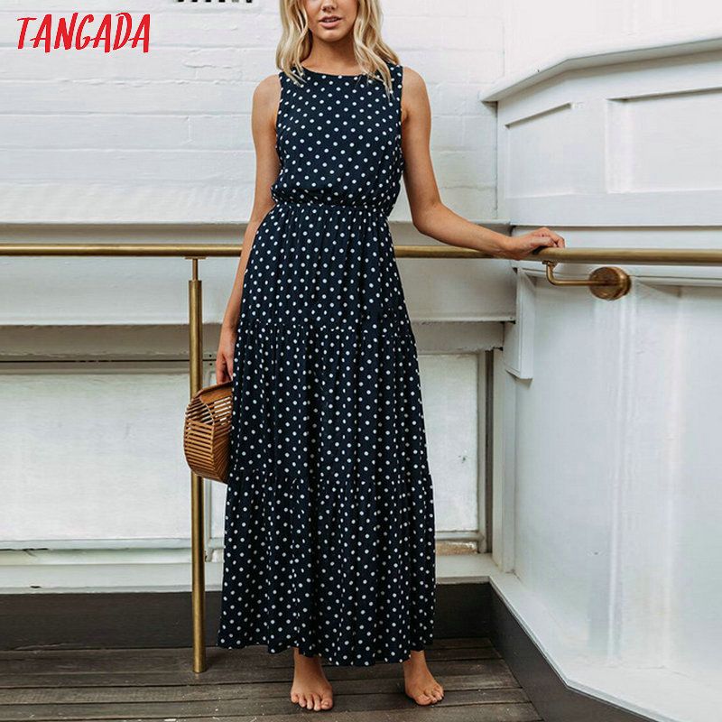 Tangada Summer Women Maxi Dress Long Korean Style Polka Dot Dress