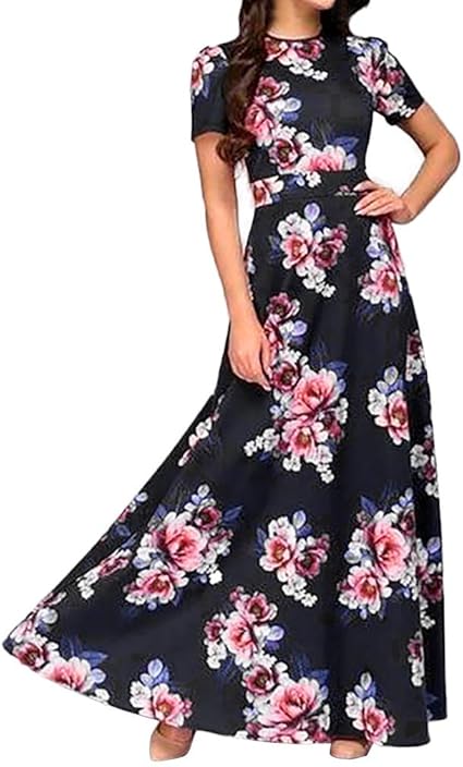Women S Maxi Dresses Floral Print Short Sleeve Summer Long Dress
