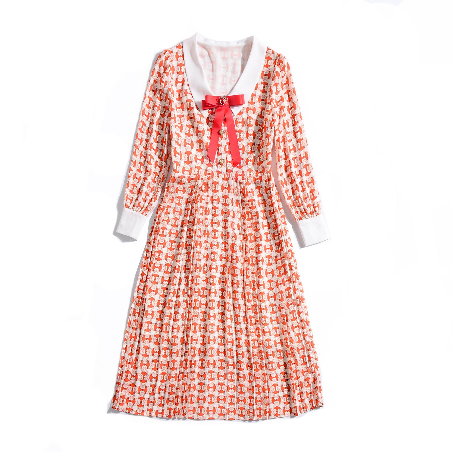 2020 2019 Spring Summer Long Sleeve Peter Pan Collar Vintage Print With Ribbon Tie Bow Mid Calf Length Dress Luxury Runway Dresses A061806 From Dynastbridal 57 29 Dhgate Com