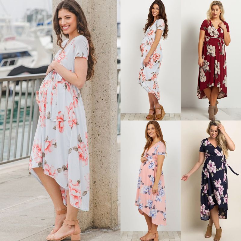 2020 New Style Pregnant Women Floral Long Maxi Dresses Maternity