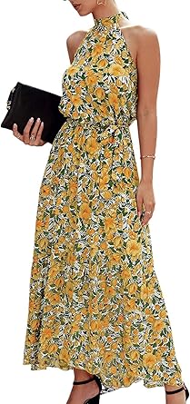 Saslax Women S Sleeveless Halter Neck Polka Dot Floral Print