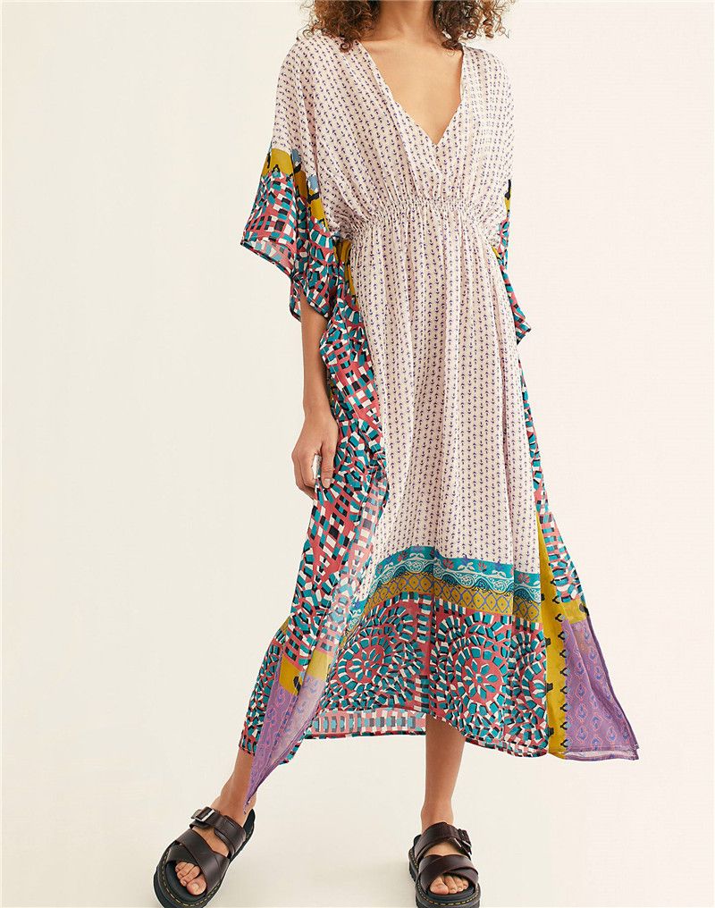 2020 Beach Kaftan Bohemian Mix Color Printed Loose Summer Maxi