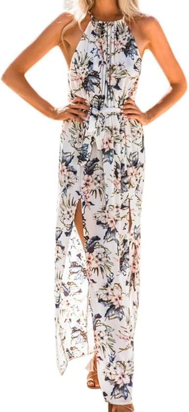 Vista Women Summer Sleeveless Boho Floral Long Maxi Dress