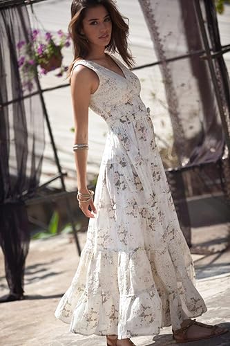 Amazon Com Cream Hippie Urban Evening Day Summer Maxi Dress Size