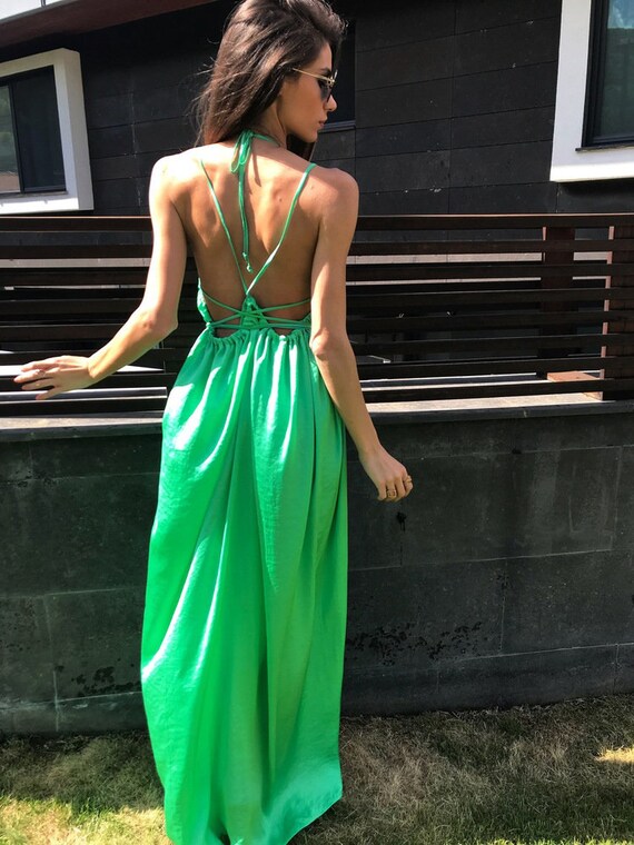 Sexy Maxi Dress Summer Dress Avant Garde Women Dress Green Etsy