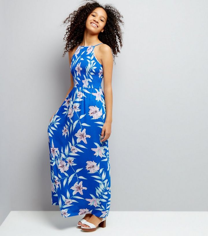 Blue Floral New Look Maxi Dress Size 10 Summer Depop