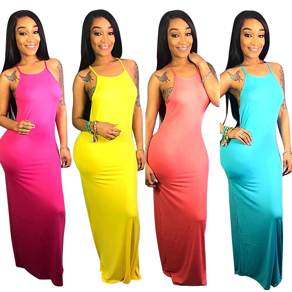 Women Summer Spaghetti Strap Sleeveless Maxi Dress Sexy Beach