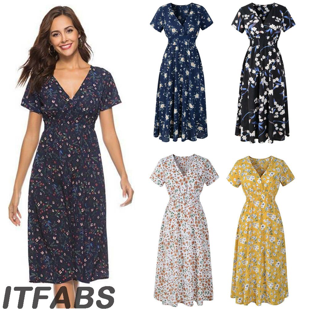 Womens Summer Boho Maxi Long Dress Evening Party Beach Dresses