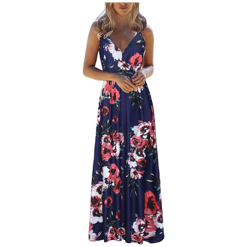 Women Sling Floral Long Dress New Arrival Sexy Summer Boho V Neck