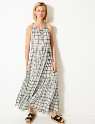 Cotton Blend Checked Relaxed Maxi Dress M S Collection M S