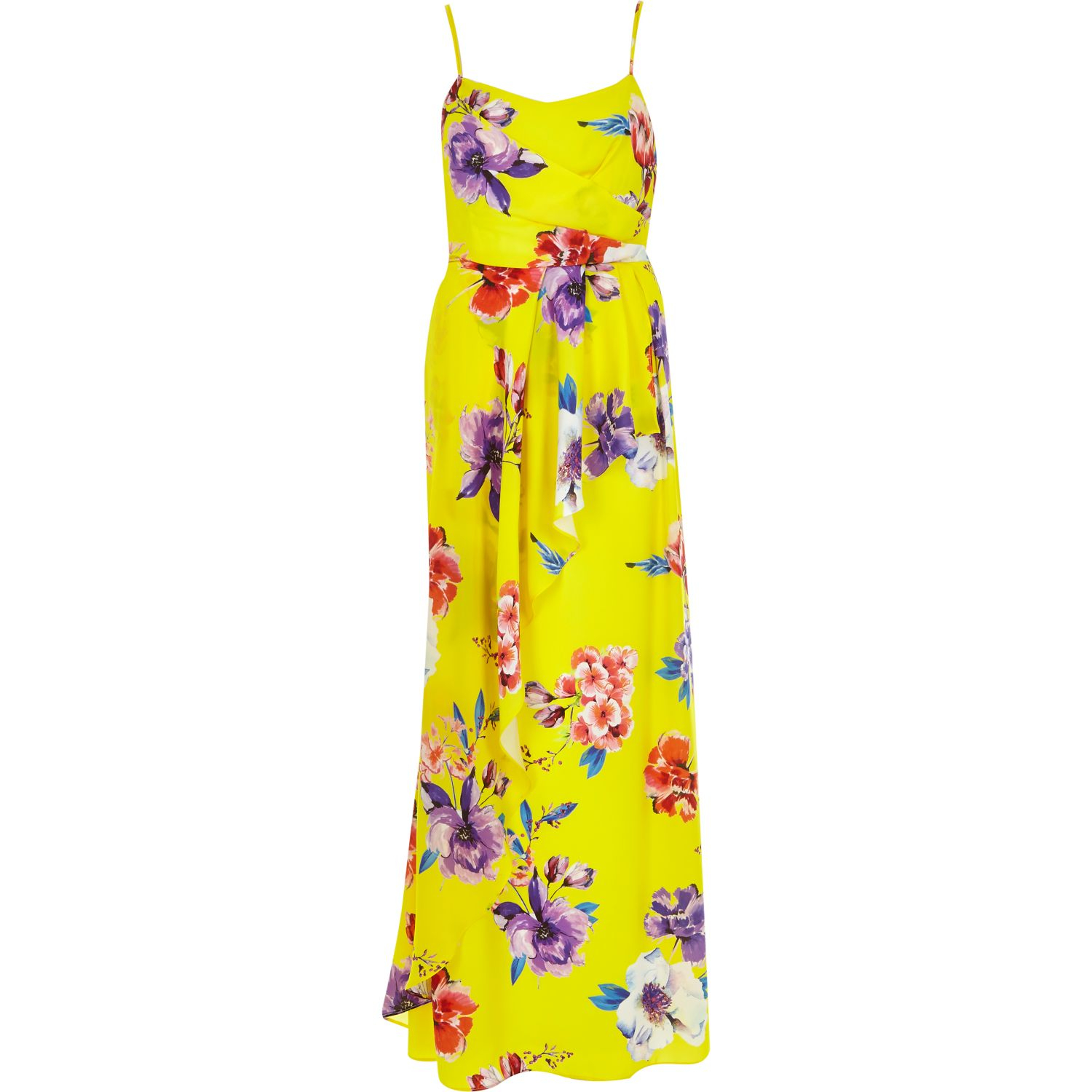 River Island Womens Yellow Floral Print Cold Shoulder Maxi Dress