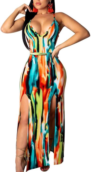 Women Casual Dresses Summer Doodling Printing Fork Opening Camisole Backless Dress Maxi Dresses Party Elegant Dresses Plus Size Dresses Women Dresses New Look Amazon Co Uk Clothing