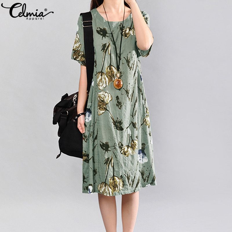 Celmia 2020 Vintage Summer Dress Short Sleeve Loose Women Elegant