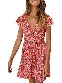 Amazon Com Gamisote Womens Floral Print Mini Dress V Neck Short
