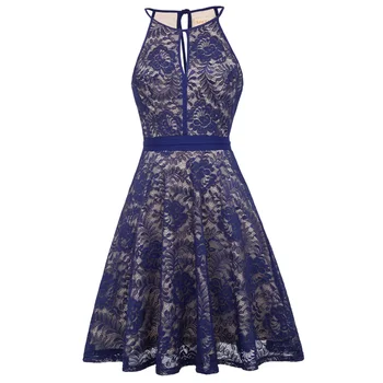 2019 Spring And Summer Navy Blue New Print Dress White Prom