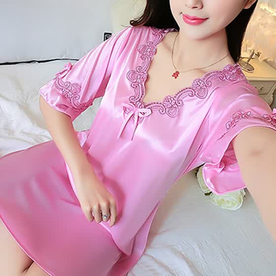 Shop Imitated Silk Sexy Lingerie Nightgown For Women Lace Summer