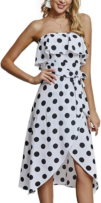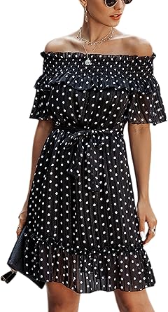 Ecowish Womens Dress Ruffle Off Shoulder Polka Dot Print Short Sleeve Flounce Casual Summer Flare Glitter Dresses With Belt At Amazon Women S Clothing Store