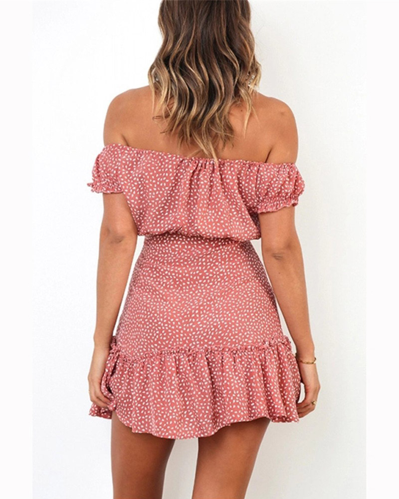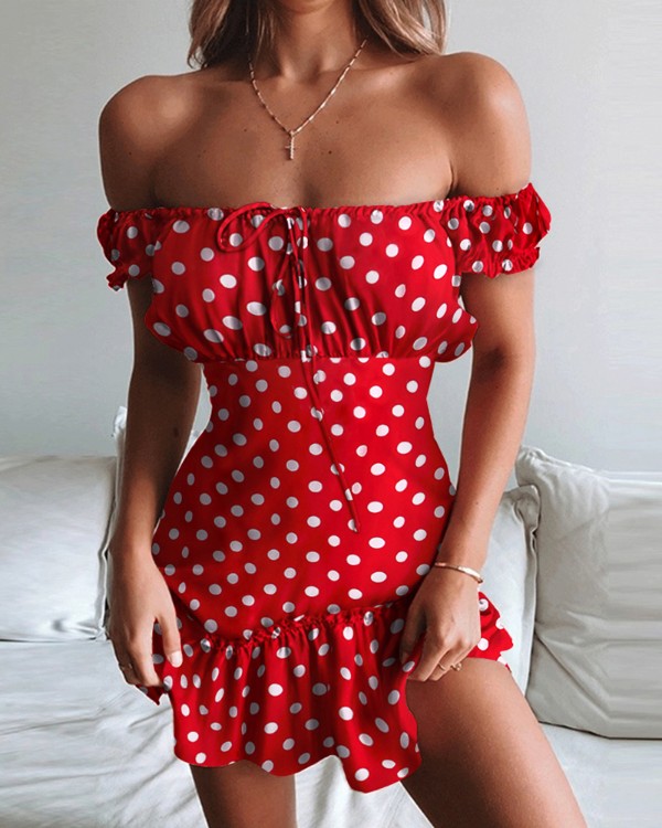 Vacation Off Shoulder Polka Dot Printed Falbala Mini Sexy Dress