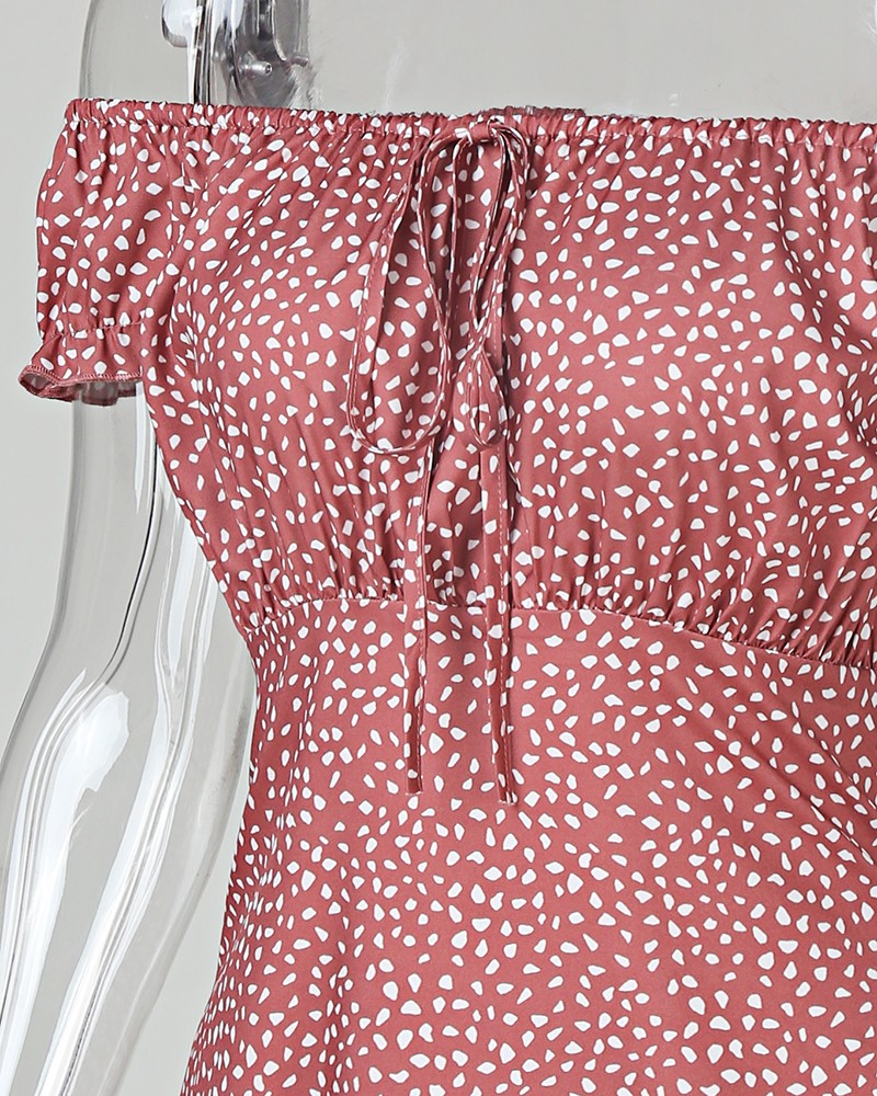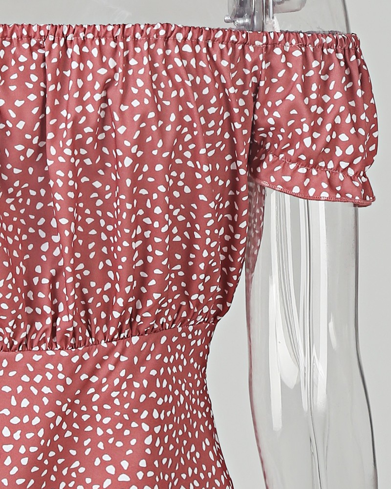 Sweet Vacation Print Off Shoulder Polka Dot Printed Falbala Dress