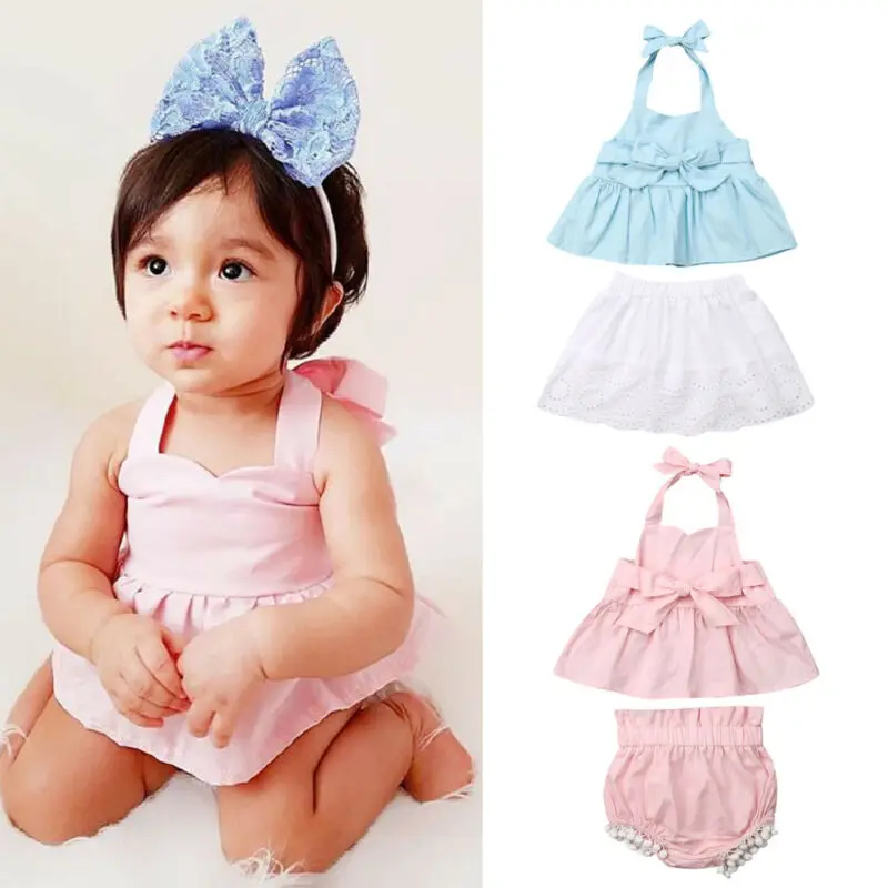 New Fashion Toddler Baby Girl Clothes Strap Vest Bow Tops Shorts