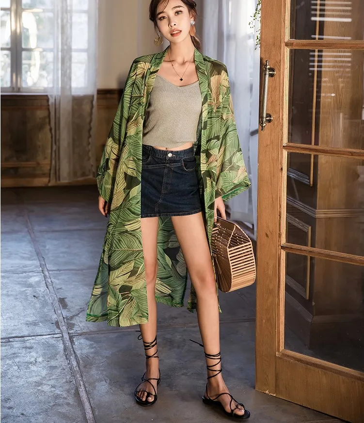 2020 Summer Fashion Women Floral Print Long Kimono Cardigan Long