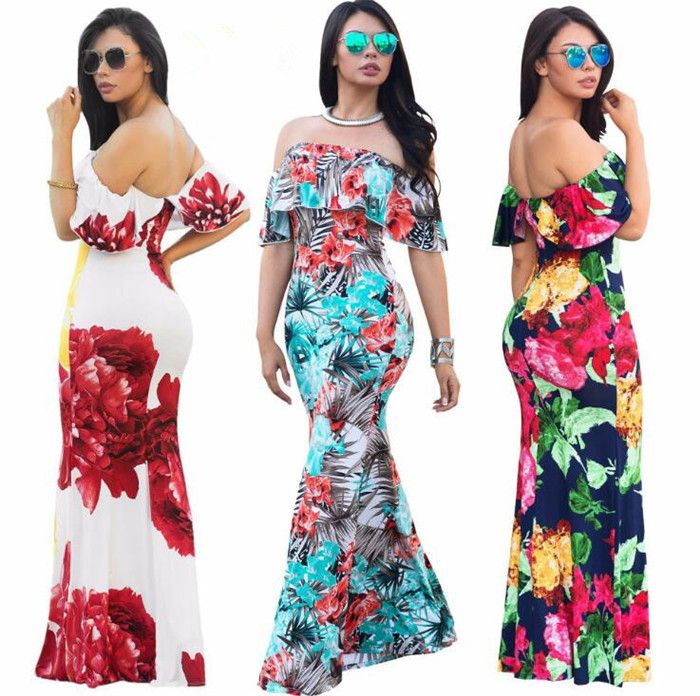 Ruffles Off Shoulder Floral Dress Summer Party Bodycon Dress Short