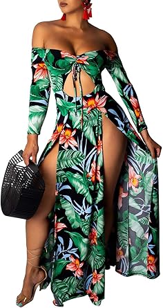 Lightlykiss Women S Sexy Off Shoulder Split Floral Dresses Long