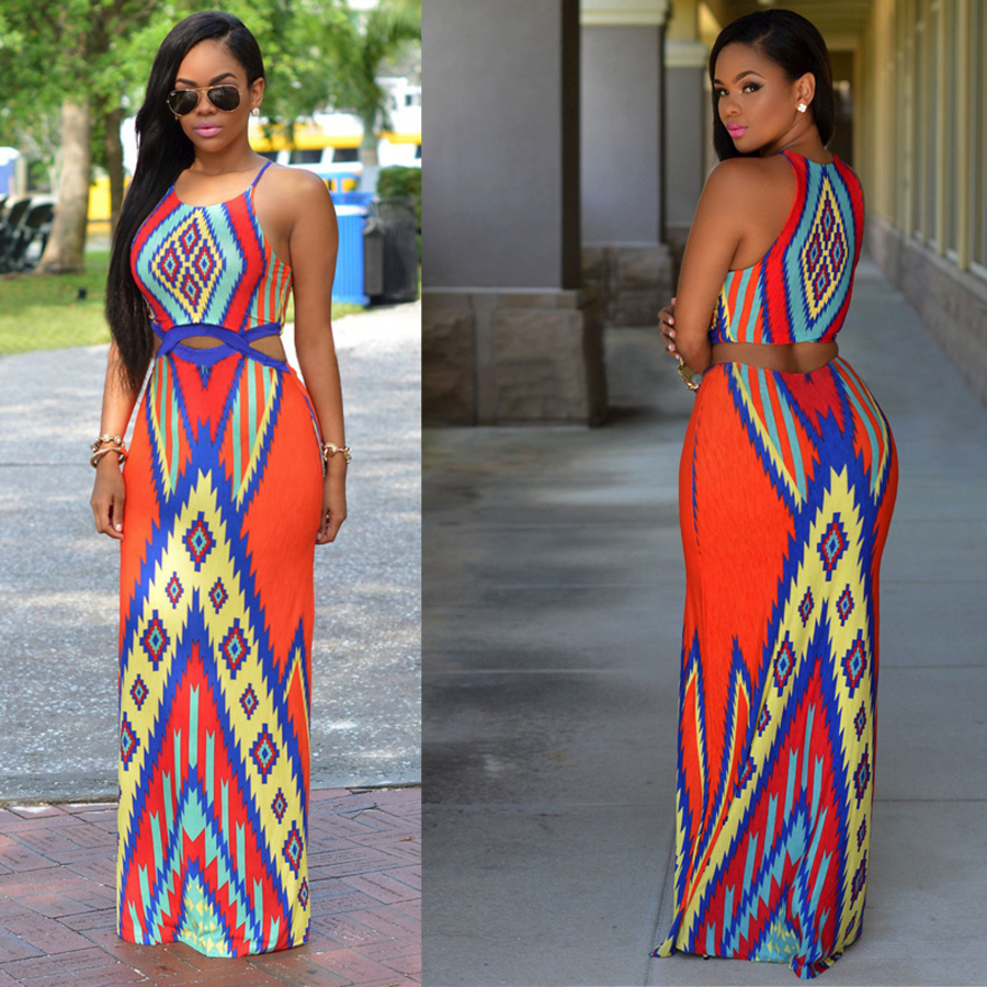 Women Summer Long Maxi Dress African Print Sexy Party Dresses Plus