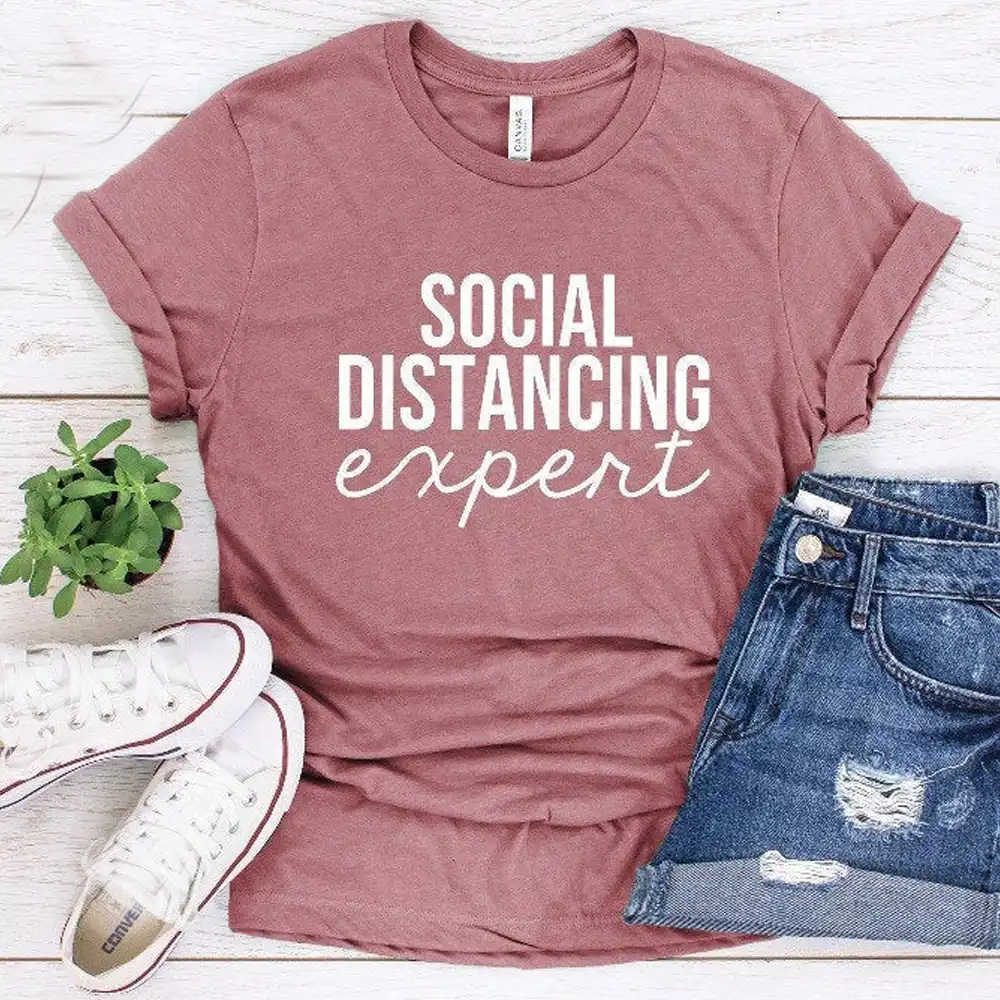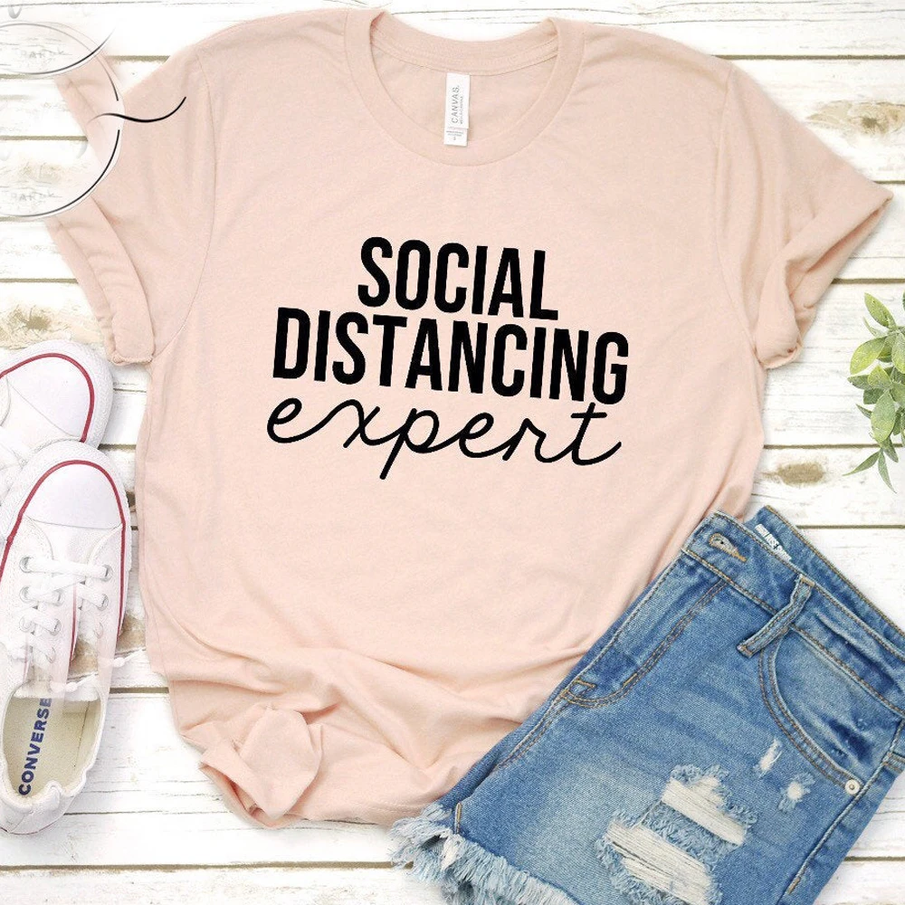Social Distancing Expert T Shirt Summer Women Clothes Introvert