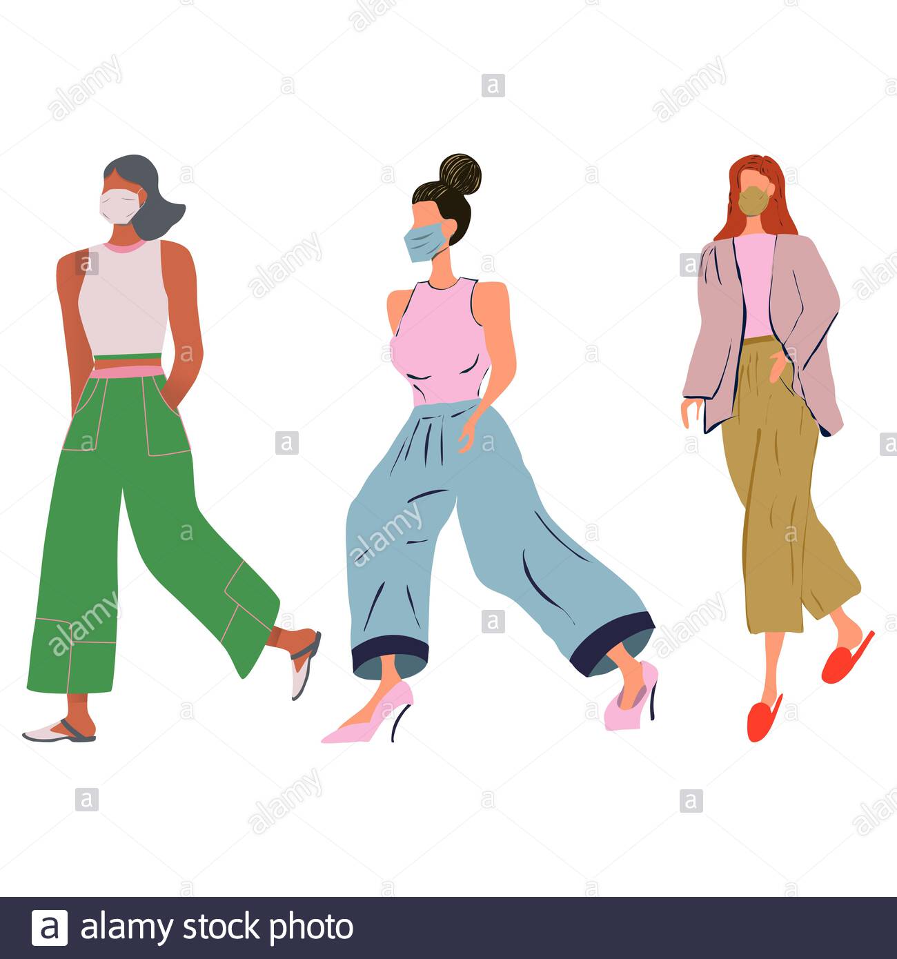 Summer Clothes Females Wearing Protective Face Masks Concept Of