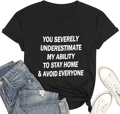Astanfy Stay Home Quarantine T Shirt Women Summer Casual Funny