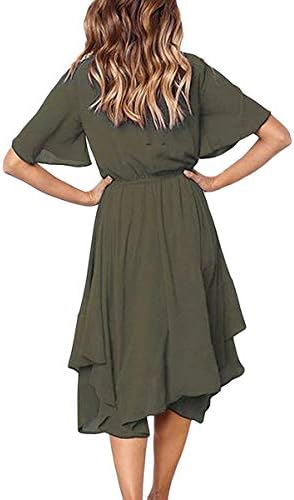 V Neck Pocket Summer Midi Dress Dark Green Pink Queen