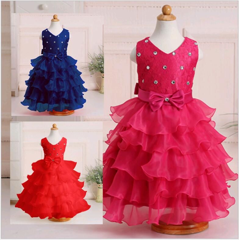 Red Color Children Frocks Designs Designer One Piece Party Dress
