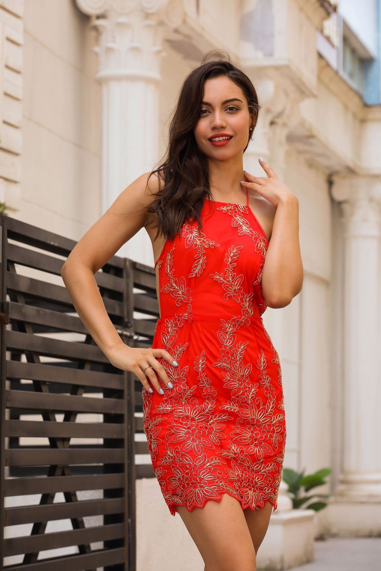 Lace Embroidery Women Red Dresses Summer Hot Sale Sleeveless