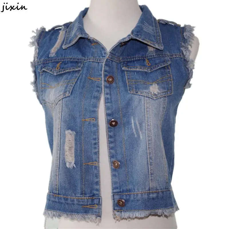 China Summer Sleeveless Ripped Denim Vest Jacket Waistcoat Women