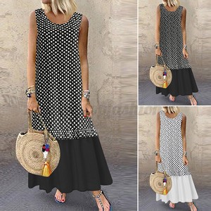 Women Summer Sleeveless Polka Dot Beach Long Dress Ladies Holiday