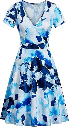 Thinice Women S Cross V Neck Short Sleeve Flowy A Line Summer