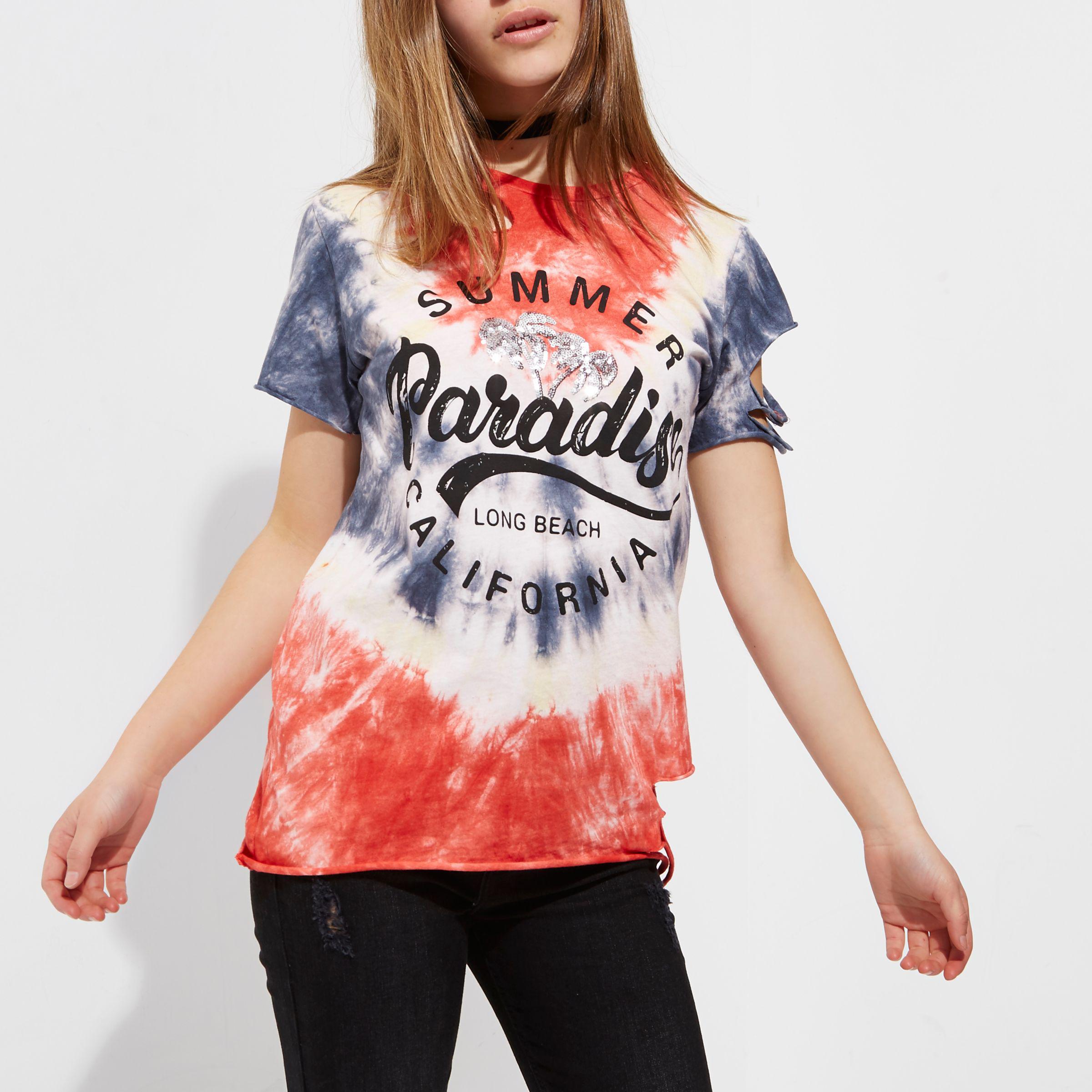 River Island Cotton Petite Red Tie Dye Summer Paradise T Shirt