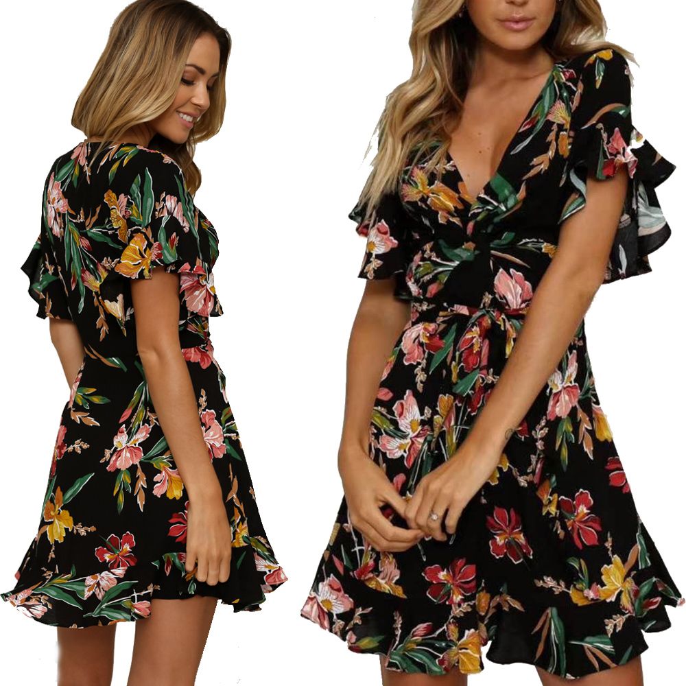 Summer v neck dresses with sleeves. Shop dresses anniecloth summer dresses long sleeve 1 sundress v neck casual dresses online. Relipop summer women short sleeve print dress v neck casual short dresses. Take the plunge with a deep v perfect for party season. Summer dress v neck summer dresses for women summer dresses for women cute summer tops for women.