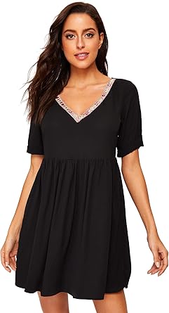 Amoretu Women Summer Tunic Dress V Neck Casual Loose Flowy Swing