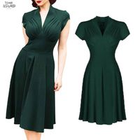 Summer Vintage Dress Women V Neck Short Sleeved Irregular Wave