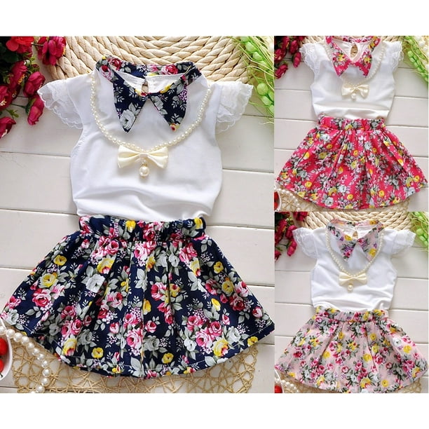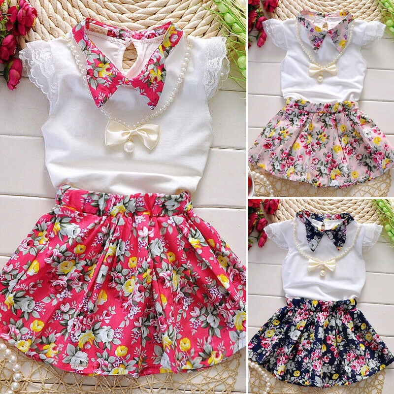 Weefy Toddler Kids Baby Girls Summer Clothes Set T Shirt Tops