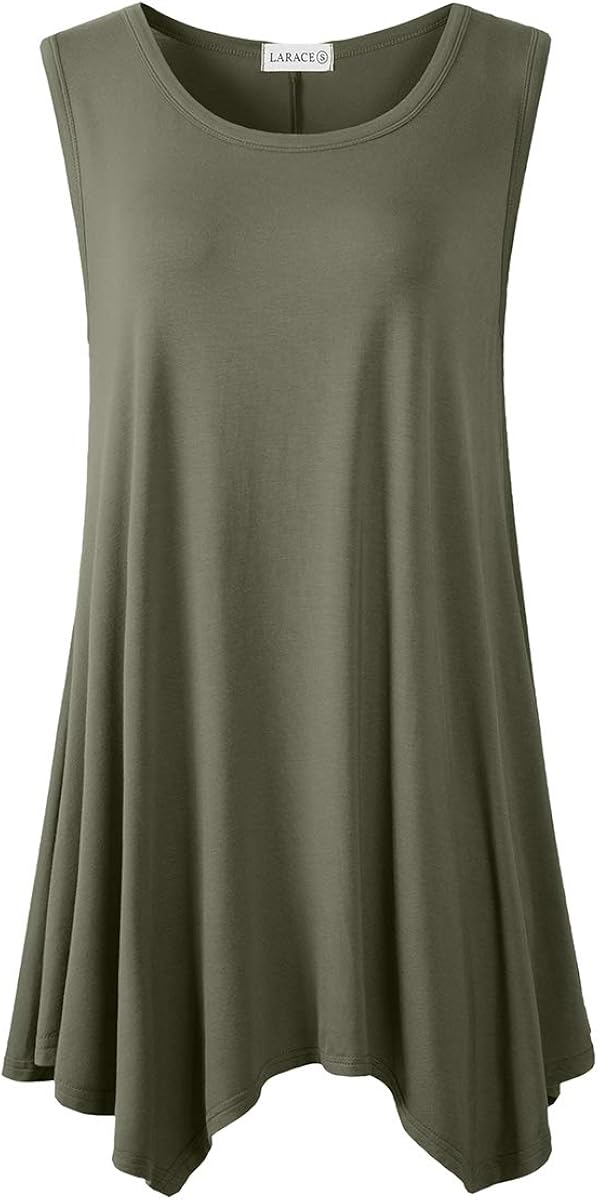 Larace Women Plus Size Solid Basic Flowy Tank Tops Summer