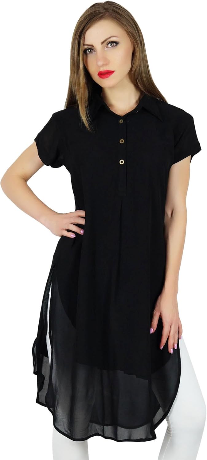 Bimba Women Black Georgette Tunic Short Kurta Kurti Casual Blouse