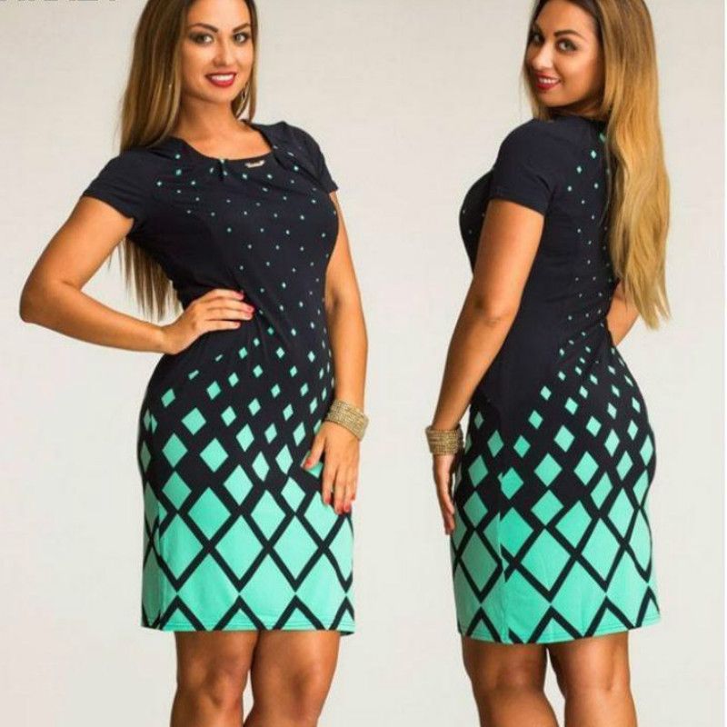 Print Plus Size L 6xl O Neck Dress Fat Mm Woman Summer Dress
